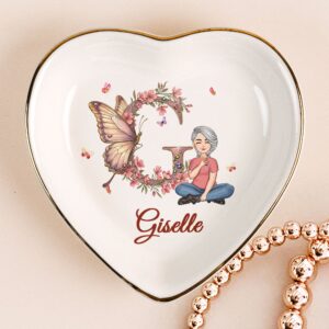 Floral Butterfly Monogram Letter Circle-shaped – Personalized Jewelry Dish