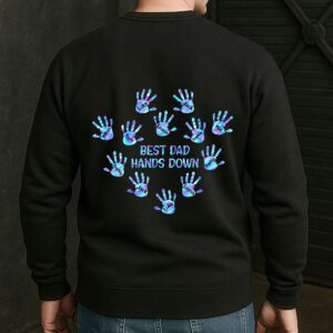 Celebrate the love and bond with your dad or grandpa with our finely crafted back printed shirt, titled, “Best Dad Hands Down”. This is a perfect way to show dad or grandpa, the most important men in your life, just how much they mean to you. The unique design speaks volumes about the warmth and closeness of your relationship, making it an excellent gift choice for occasions like Father’s Day or any other special moment you wish to share with them. Perfect for birthdays, Christmas, anniversaries, or any occasion where you want to express your heartfelt tribute.