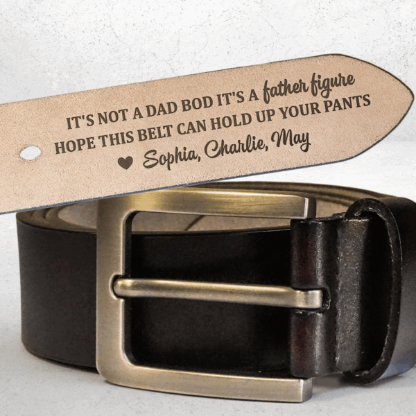 This Custom Name Personalized Engraved Leather Belt is more than just an accessory; it’s a heartfelt gesture that adds a personal touch to every outfit. Crafted from genuine leather, this engraved belt makes for a timeless and durable piece. The custom engraving allows you to add a personal message or a special date, making it an ideal Father’s Day gift. Whether it’s for your dad, grandpa, or papa, this personalized leather belt is a thoughtful and practical expression of your love and appreciation. Imagine the joy on their face as they unwrap a gift that is not only stylish but also carries a sentimental touch. The engraved details make this belt a unique accessory, showcasing your thoughtfulness in every detail. Surprise your loved one with a personalized and functional gift that they can wear with pride. Whether for Father’s Day or just to express your love, this Father Daughter Personalized Engraved Leather Belt is a meaningful gesture that will be cherished for years to come. Ideal gifts for Dad, Daddy, Grandpa, Papa, Step Dad, Bonus Dad, Husband, and meaningful for occasions like Christmas, Thanksgiving, Valentine’s Day, and anniversaries.