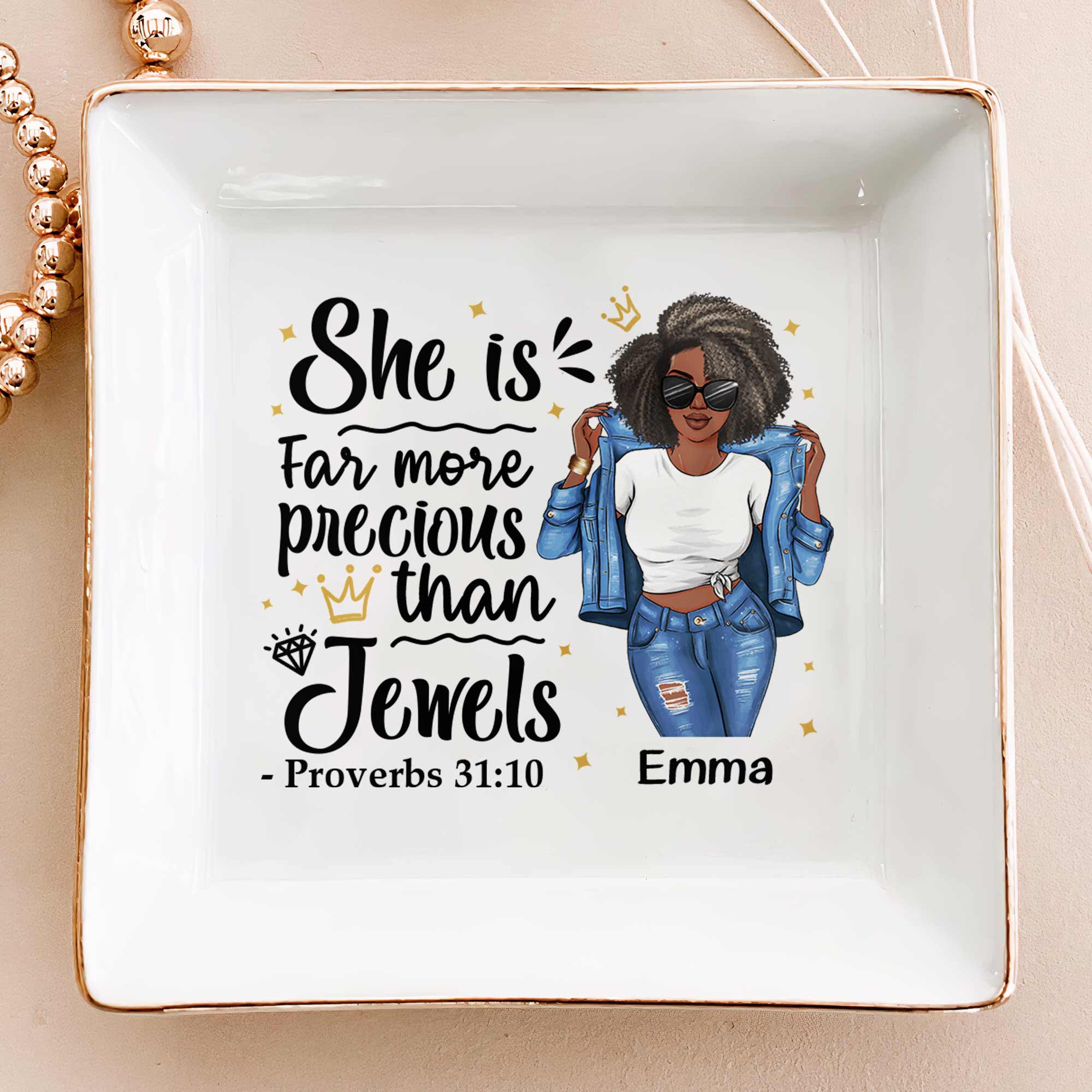 Looking for a thoughtful and unique gift for a special girl or woman in your life? Consider a personalized jewelry dish! Perfect for birthdays or any occasion, this beautiful dish can be customized with a name, beautiful design. Ideal for a Christian girl, daughter, black girl, bestie, sister, or any woman you want to celebrate, this jewelry dish is both practical and sentimental. It’s perfect for holding rings, earrings, and other small treasures, serving as a daily reminder of your love and appreciation. This personalized jewelry dish adds a touch of elegance to any vanity or dresser and makes a memorable and cherished gift.
