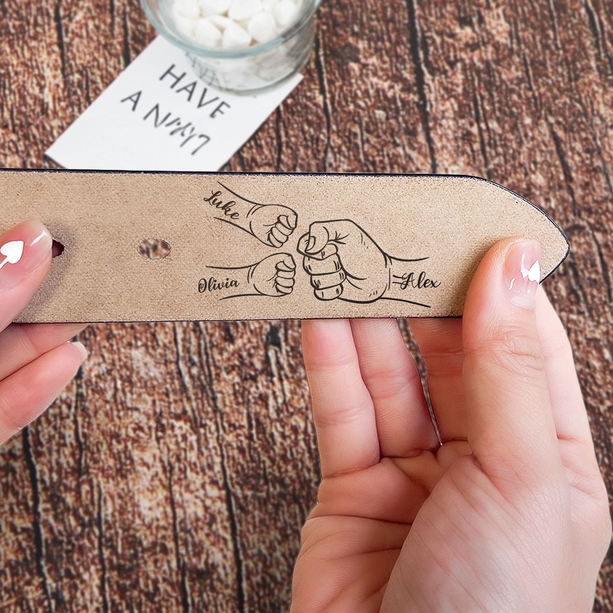 Happy First Father’s Day Fist Bump Daddy And Baby – Personalized Engraved Leather Belt
